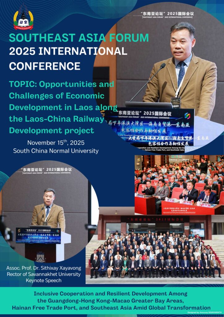 Assoc. Prof. Dr. Sithixay Xayavong represented Laos at the Southeast Asia Forum 2025 in China. His keynote speech focused on resilience, cooperation, and the economic opportunities of the Laos–China Railway. A meaningful milestone for Lao academia on the international stage.